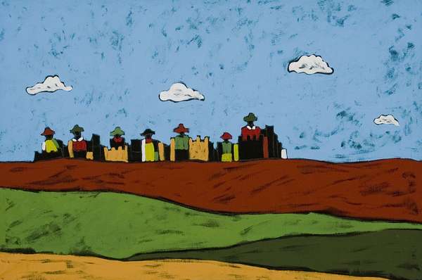 Lotto 318 | Tano Festa Guardiani del castello acrilici su tela cm. 60x90 Firma sul retro...