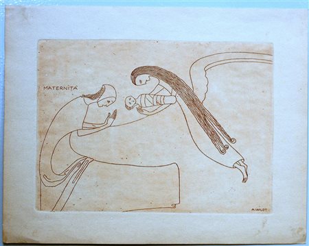 Da Wildt Adolfo (Milano 1868-1931) Maternità. Acquaforte in inchiostro bruno. Titolata in alto a sinistra e firmata in basso a destra. Dimensioni al rame mm. 195x265, foglio ca. mm. 270x342.