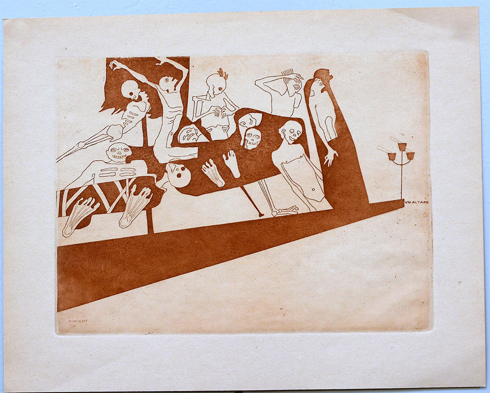 Da Wildt Adolfo (Milano 1868-1931) Un altare. Acquaforte e acquatinta in inchiostro bruno. Titolata a destra e firmata in basso a sinistra.Dimensioni al rame mm. 196x267 foglio ca. mm. 265x338.