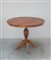 Tavolo con piano tondo intarsiato da rosone, gamba centrale scanalata...