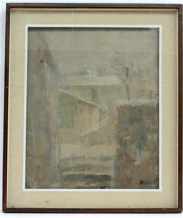 Firma indecifrata "Case" 1969. Olio su tela (60x50) firmato e datato in basso a destra, in cornice (difetti)