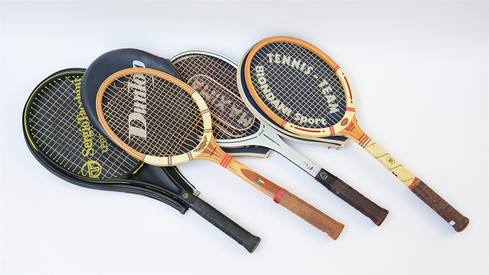 Lotto composto da quattro vecchie racchette da tennis (difetti)