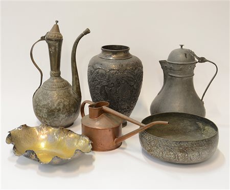 Lotto composto da sei oggetti diversi in metallo e metallo argentato