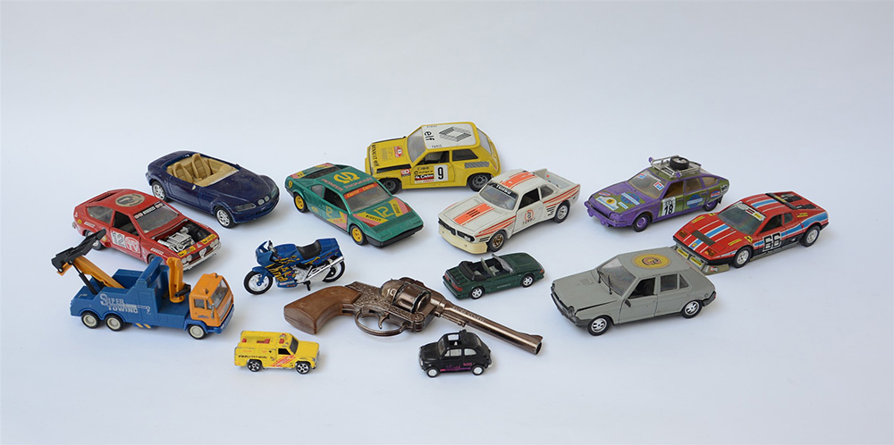 Lotto composto da alcuni modellini di automobili diverse epoche e materiali (difetti)