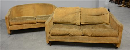 Coppia di divani a due posti rivestiti in velluto beige (difetti)