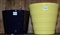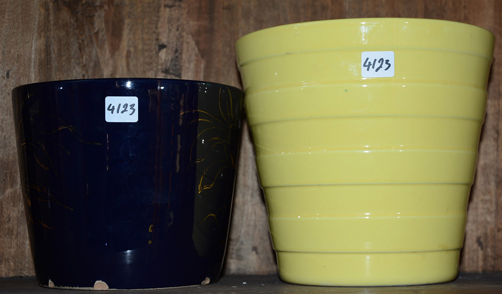Lotto composto da due vasi di cui uno in ceramica gialla di gusto déco e uno in ceramica blu e oro (h max cm 19, d max cm 20) (difetti)