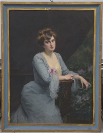Fanny Laurent Fleuny "Ritratto di gentildonna" olio su tela (cm 130x100)...