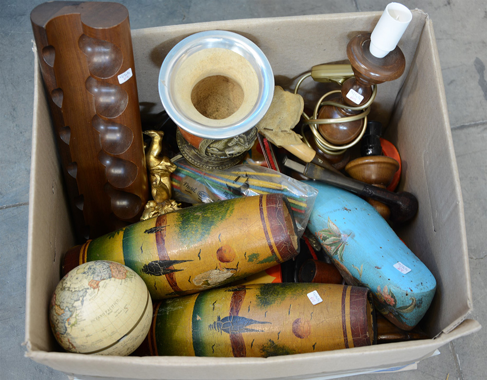 Scatola contenente numerosi oggetti diversi in legno (difetti)