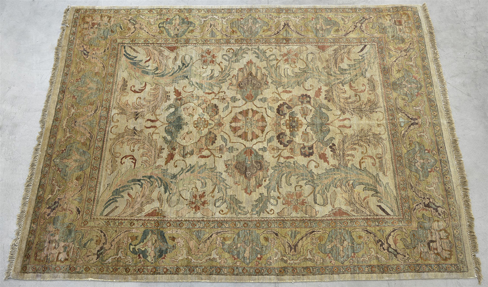 Tappeto orientale a decoro vegetale nei toni del verde e del beige (cm 320x247) (difetti) -EN Tappeto orientale a decoro vegetale nei toni del verde e del beige (cm 320x247) (difetti)