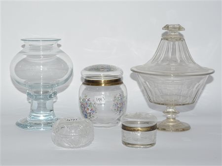 Lotto composto da cinque oggetti diversi in vetri e cristallo