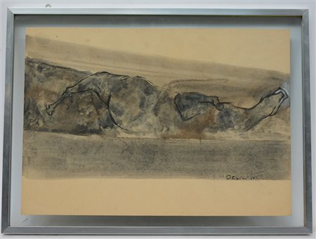 Firma indecifrata, sec XX "Senza titolo" '62 acquarello su carta (cm 35x50)...