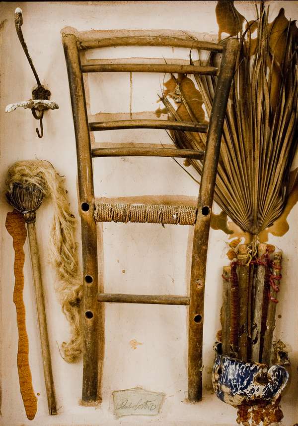 Claudio Costa Composizione – 1979 assemblaggio cm. 106x74x17 Firma in basso al centro Autentica su foto a cura della Gio Arte srl, Mestre Sul retro timbro della Galleria d'Arte contemporanea Rinaldo Rotta, Genova e della Galleria Gio Arte,Mestre. Opera pubblicata nella mostra di Genova