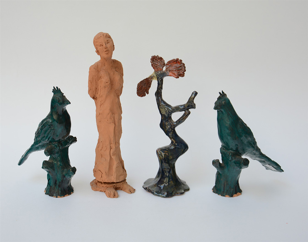 Matilde Magnaghi. Gruppo di quattro sculture in terracotta e terracotta smaltata di diverso soggetto (difetti)