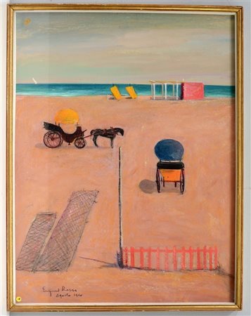 E. Rossi, "Spiaggia" olio su masonite (cm 80x60) firmato e datato in basso a sinistra, in cornice.