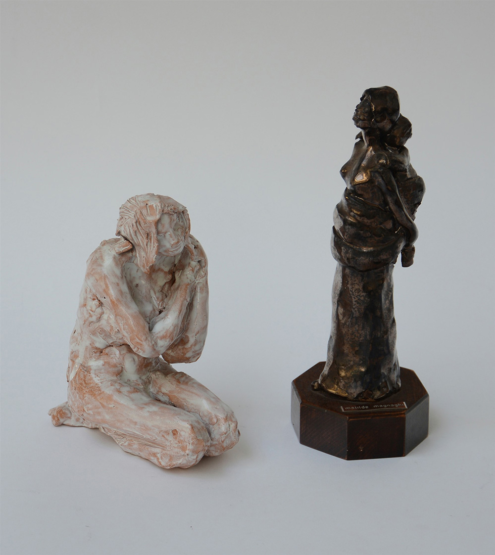Matilde Magnaghi. Due sculture in terracotta smaltata raffiguranti Madre con Bambino e una figura inginocchiata