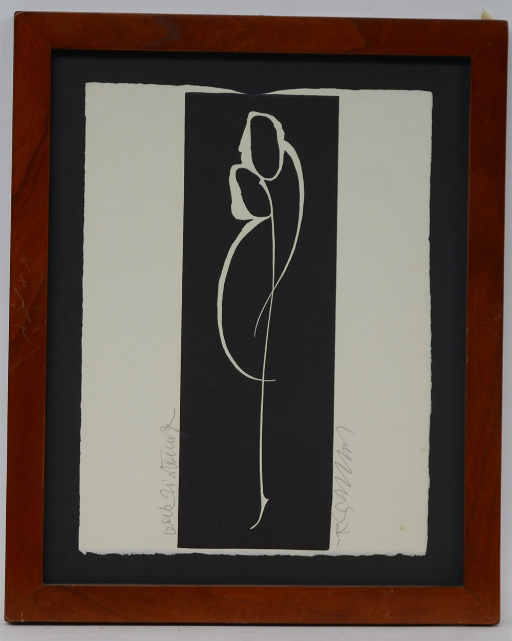 Firma indecifrata secolo XX "Figure" litografia (cm 31x23) firmata ed iscritta, in cornice (difetti)