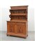 Credenza con alzata a due ripiani in legno intagliato a nastri, uccelli e...