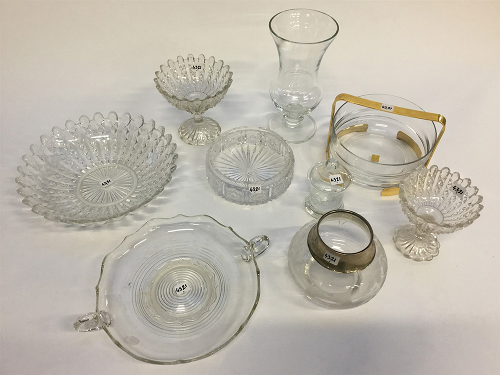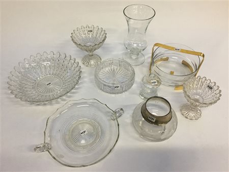 Lotto composto da nove oggetti diversi in vetro (difetti)