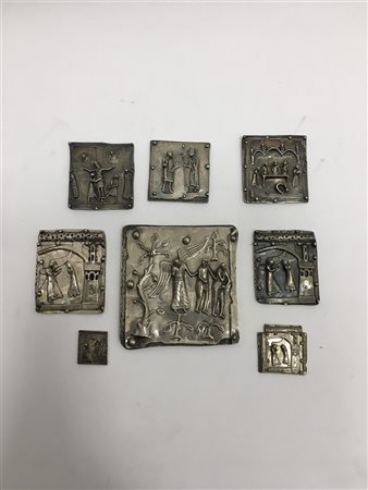 Lotto composto da otto placche in argento raffiguranti alcune formelle che...