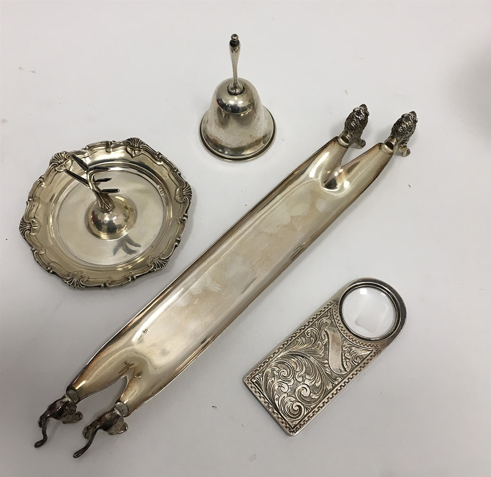 Lotto composto da quattro oggetti diversi in argento (gr 250 ca)(difetti)
