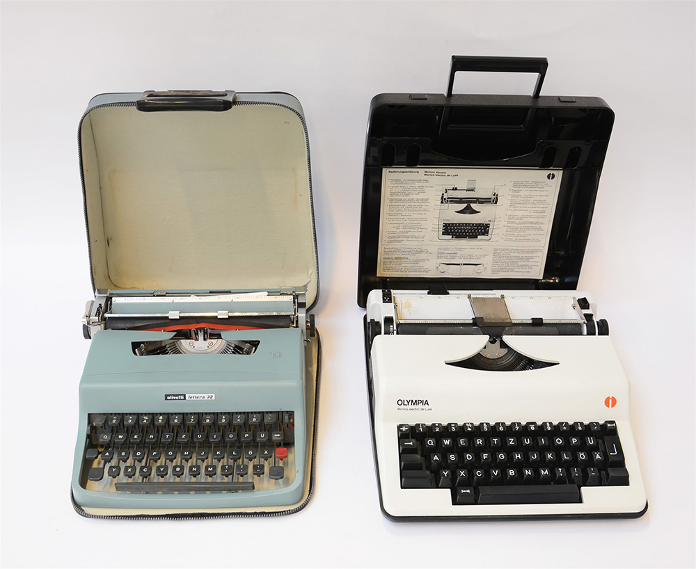 Lotto composto da una macchina da scrivere Olivetti "Lettera 32" e una macchina da scrivere Olimpia entrambe in custodia originale (difetti)
