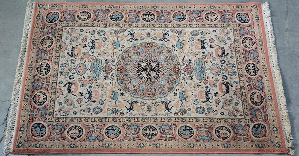 [Tappeti] Tappeto meccanico con disegno orientale, sec. XX (cm 196x140) (difetti)