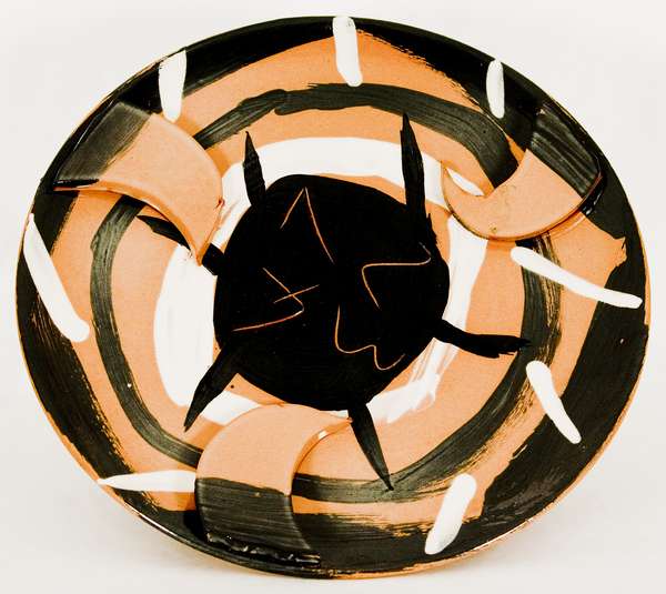 Tommaso Cascella Terre di terra – 1994 piatto in ceramica dipinto con terre ad ingobbio su forme tornite e cotte, esemplare unico cm. 14x37x37 Firma sul retro Certificato di autenticità a cura della Bottega Gatti,Faenza