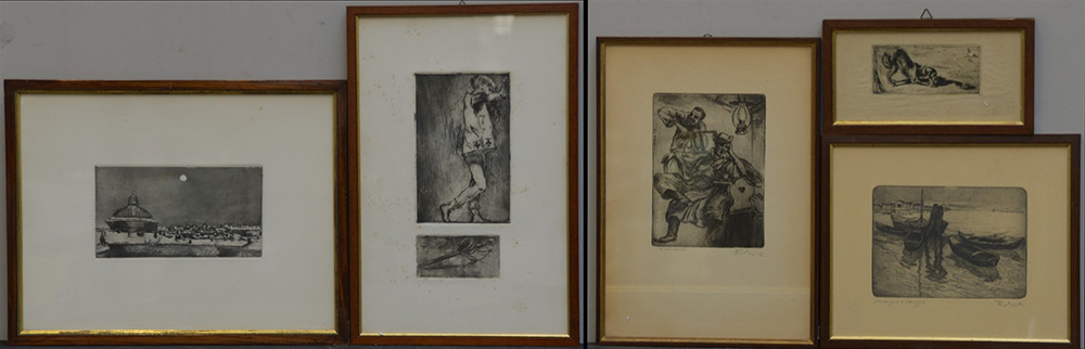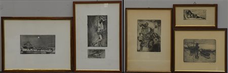 Lotto composto da cinque acqueforti di soggetti, autori e misure differenti. In cornici