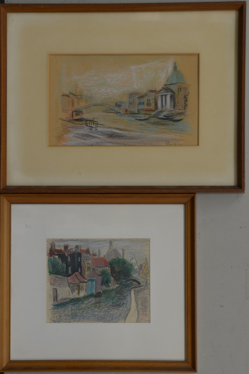 Giuseppe Flangini "Canal Grande" due tecniche miste di misure diverse. In cornici