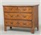 Cassettone in noce con fronte sagomato a tre cassetti, interamente intarsiato...