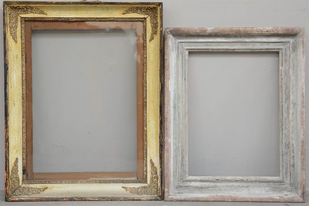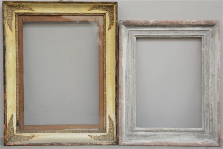 Lotto di due cornici in legno laccato, una del sec. XIX decorata con fregi dorato, misure diverse (difetti)