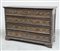 Antico cassettone con quattro cassetti e fianchi pannellati da sagome...