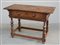 Tavolo in noce ad un cassetto sottopiano pannellato, quattro gambe tornite...