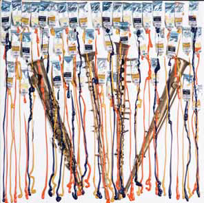 Arman Nizza 1928 – New York 2005 Senza titolo, 2001 tubetti di colore e frammenti di strumento musicale su tela, cm 80x80x10. Firmato sul bordo inferiore: Arman Opera registrata presso gli Archivi Denyse Durand- Ruel, Parigi, n. 8713. Provenienza: Milano, Christie’s, Arte Moderna e Contemporanea, 24/10/2009, lot. 80.
