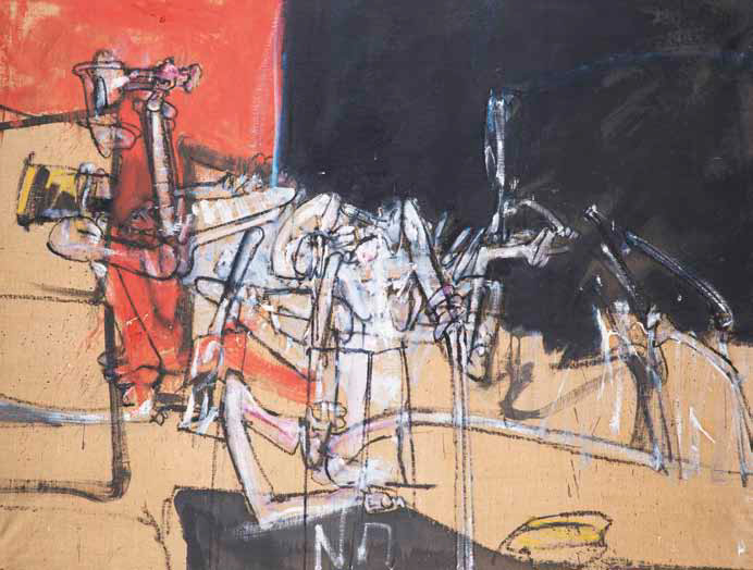 Lotto 44 | Valerio Adami Bologna 1935 Fatto, 1961 tecnica mista su tela, cm 140x184.