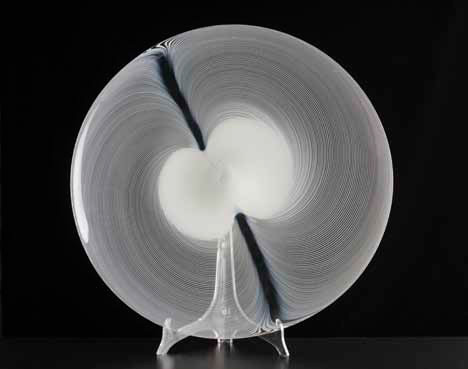 TAPIO WIRKKALA Grande piatto della serie “Pavoni” in vetro a mezza filigrana. diametro cm 47.