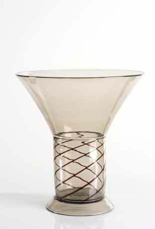 OWE THORSSEN E BRIGITTA KARLSSON Vaso “Uppsala” in vetro trasparente lavorato ad incalmo con spirali nere, 1992. Firma incisa: Venini 92 (simbolo di Karlsson & Thorssen) altezza cm 27. Bibliografia: A. Venini Diaz de Santillana, Venini, Catalogo ragionato, 1921 - 1986, Skira, 2000, fig. 306; Franco Deboni, I vetri Venini, Catalogo 1921-2007, volume II, Allemandi & C ed. 2007, fig. 306.