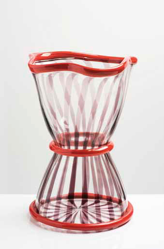 ELENA CUTOLO Vaso “Rosa Tea” in vetro a canne policrome, 2003. Firma incisa: venini 2003 P.d.A. altezza cm 40. Bibliografia: Franco Deboni, I vetri Venini, Catalogo 1921-2007, volume II, Allemandi & C ed. 2007, fig. 382.