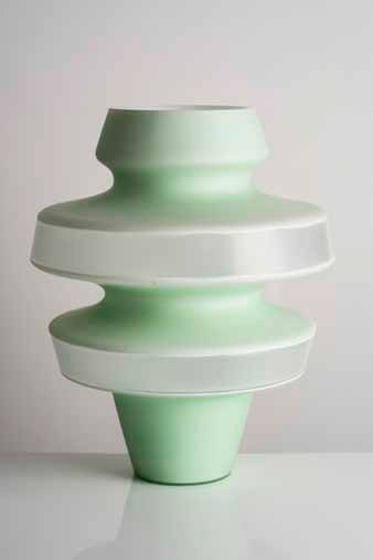 EMMANUEL BABLED Vaso “Ring Tower II” in vetro soffiato incamiciato opaco e verdognolo successivamente molato, 2005. Firma incisa: venini 2005 emmanuel babled P.d.A. altezza cm 40, diametro 32.