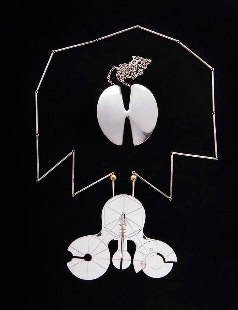 GIO POMODORO Collier in argento con pendente, 1967 ca eseguito da GEM, Milano, lunghezza cm 40 cm. punzone GEM, punzone dell’argento 800