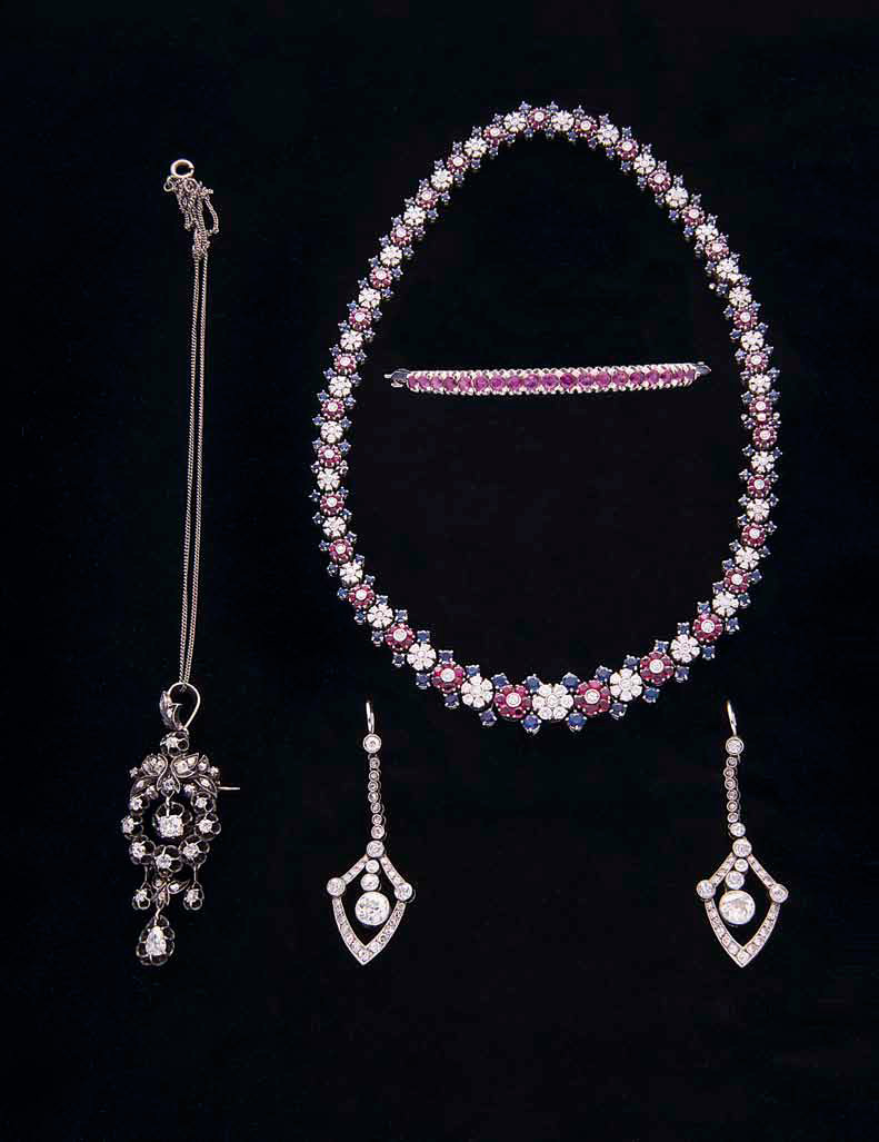 Pendente-spilla in argento e brillanti, gr. 13,8.
