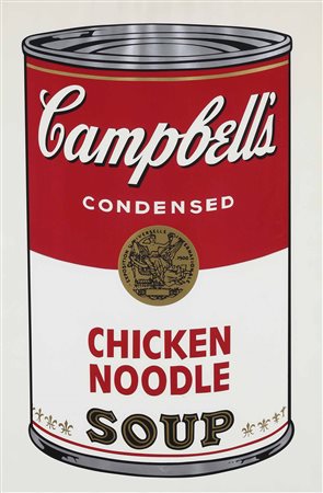 Andy Warhol (1928-1987), Campbell's Chicken Noodle Soup, 1968, serigrafia a colori su carta bianca, cm 88,9x58,4 firmata con penna a sfera al retro es. 187/250 Esemplare parte di un portfolio di 10 serigrafie. Edizioni 250, firmate con penna a sfera e numerate con timbro al retro. 26 prove d’artista, firmate e numerate A-Z al retro. Stampato da: Salvatore Silkscreen Co, Ne York Pubblicazioni: Factory Additions, New York, Bibliografia: Andy Warhol prints Catalogue Raisonné 1962-1987, Shellmann Edition, 1997, p. 46, n. 45