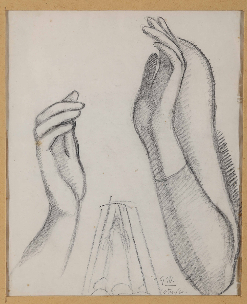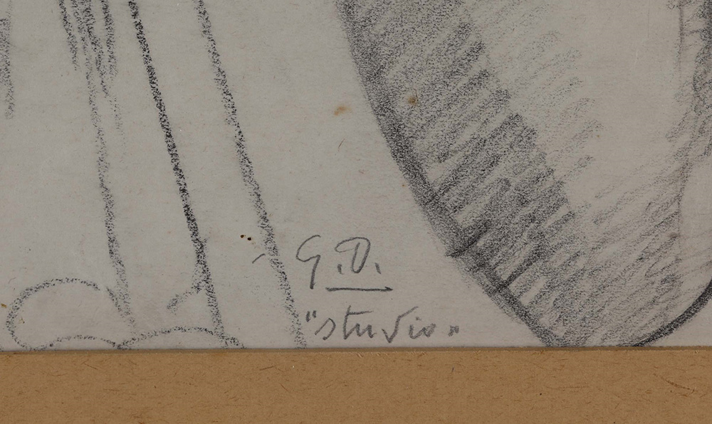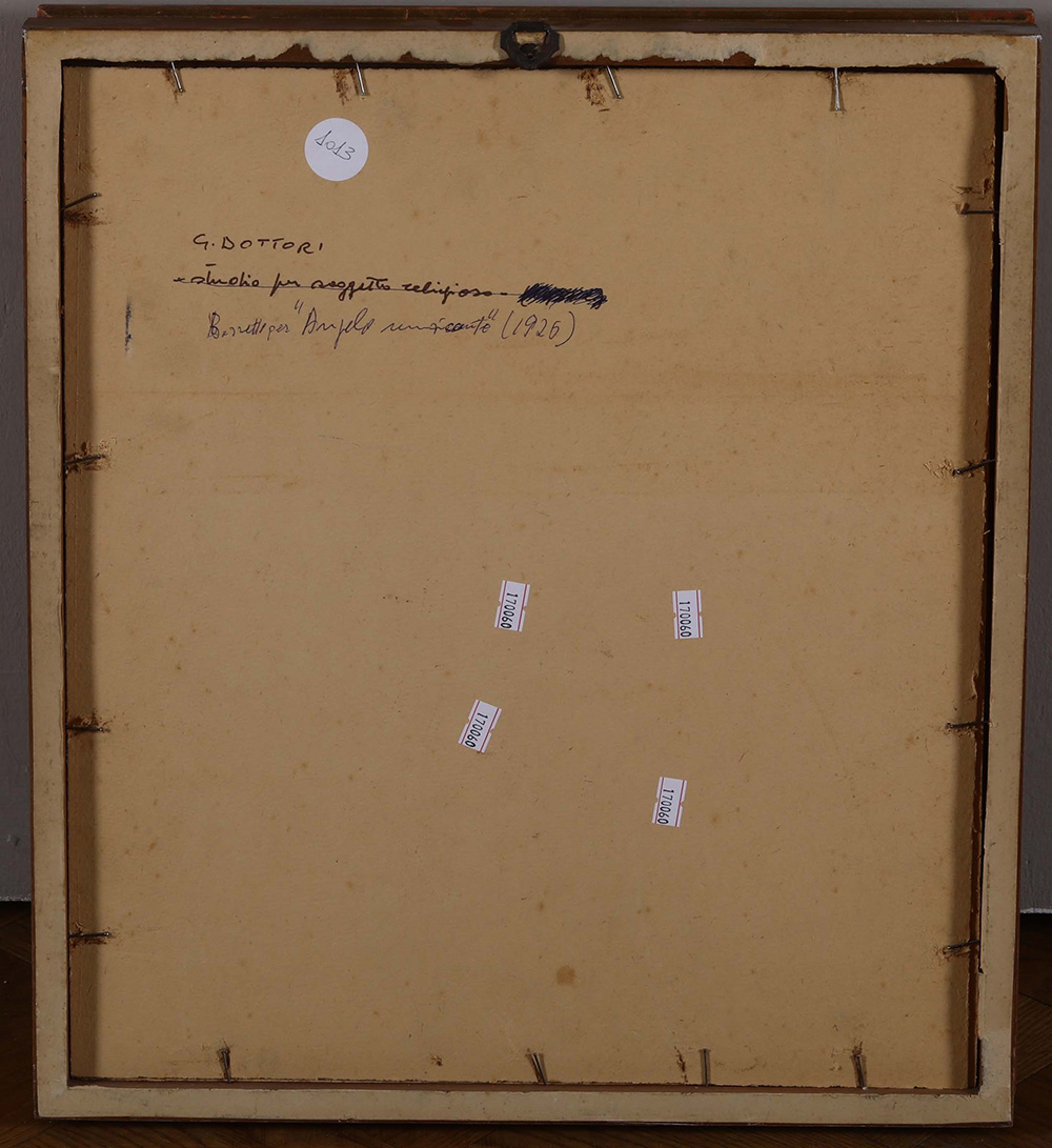 Gerardo Dottori (1884-1977), Studio per “Angelo musicante”, 1926, matita su carta, cm 30x25 siglato e intitolato in basso a destra Al verso: “Frammento di volto femminile” Nota: titolato dallo stesso autore Studio; attribuito il titolo “Angelo Musicante” (cfr. n. 322) la prima volta in G. Ponti, 2004. Opera registrata presso l’Archivio Gerardo Dottori con il n. 900, Provenienza: Collezione privata, Roma Esposizioni: Giò Ponti, L’Evoluzione dell’Avanguardia, a cura di R. Gnisci, 4 settembre - 29 ottobre 2004, Chimera s.r.l., Roma Bibliografia: Giò Ponti L’Evoluzione dell’Avanguardia, a cura di R. Gnisci, 4 settembre - 29 ottobre 2004, Chimera s.r.l., Roma, p. 41 ripr. Gerardo Dottori. Catalogo generale ragionato, a cura di M. Duranti, EFFE Fabrizio Fabbri Editore, Perugia, 2006, p. 757, n. 322 ripr.