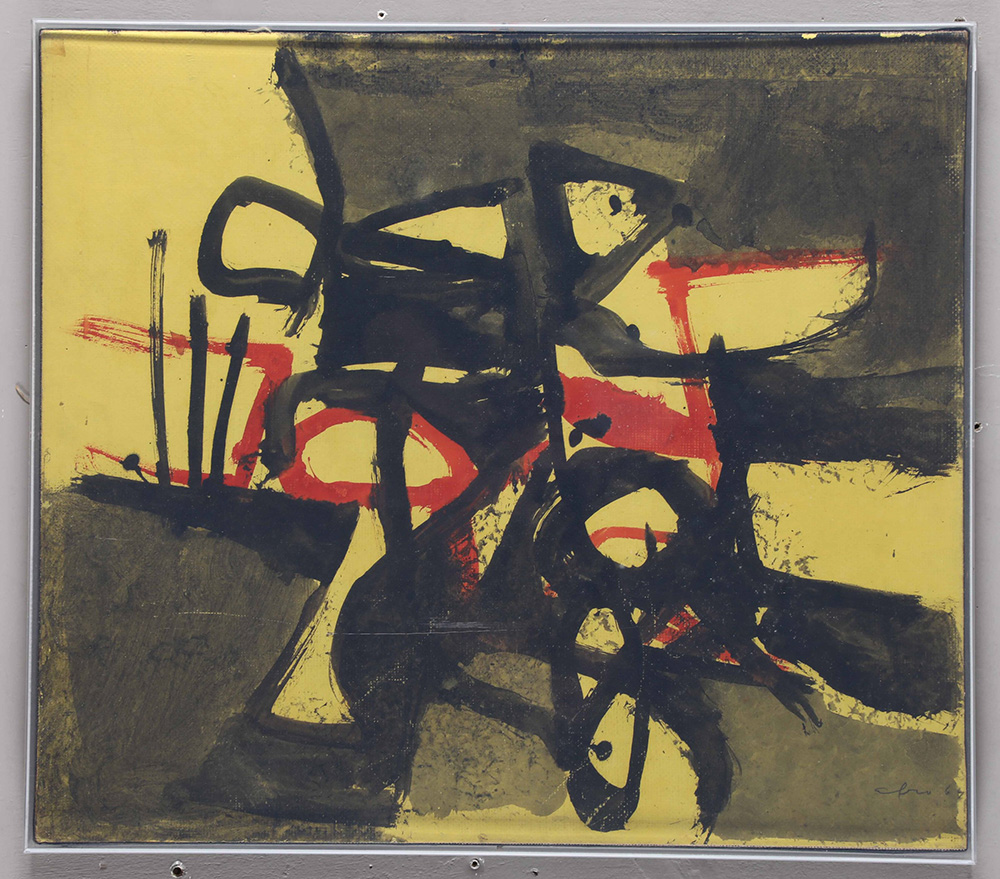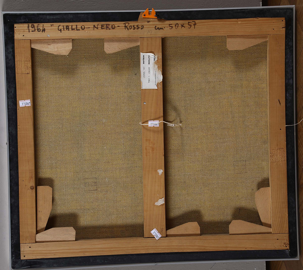 Afro Basaldella (1912-1976), Giallo Rosso Nero, 1964, olio su carta intelata, cm 50x57 Opera registrata presso l’Archivio Afro Basaldella con il n. 64B115, Provenienza: Collezione Serena Cagli Basaldella, Roma Galleria Il Gabbiano, Roma, ivi acquistato dall’attuale proprietario
