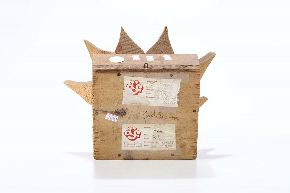 Mario Ceroli (1938), Ninfea, 1971, legno, cm 28x28x14 firmato e datato sotto la base es. 16/50 Etichetta Galleria De Foscherari, Bologna, Provenienza: Collezione privata, Milano Galleria De Foscherari, Bologna, ivi acquistato dall'attuale proprietario