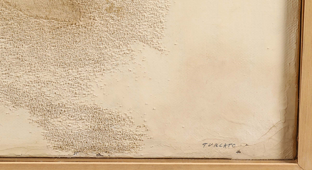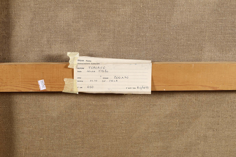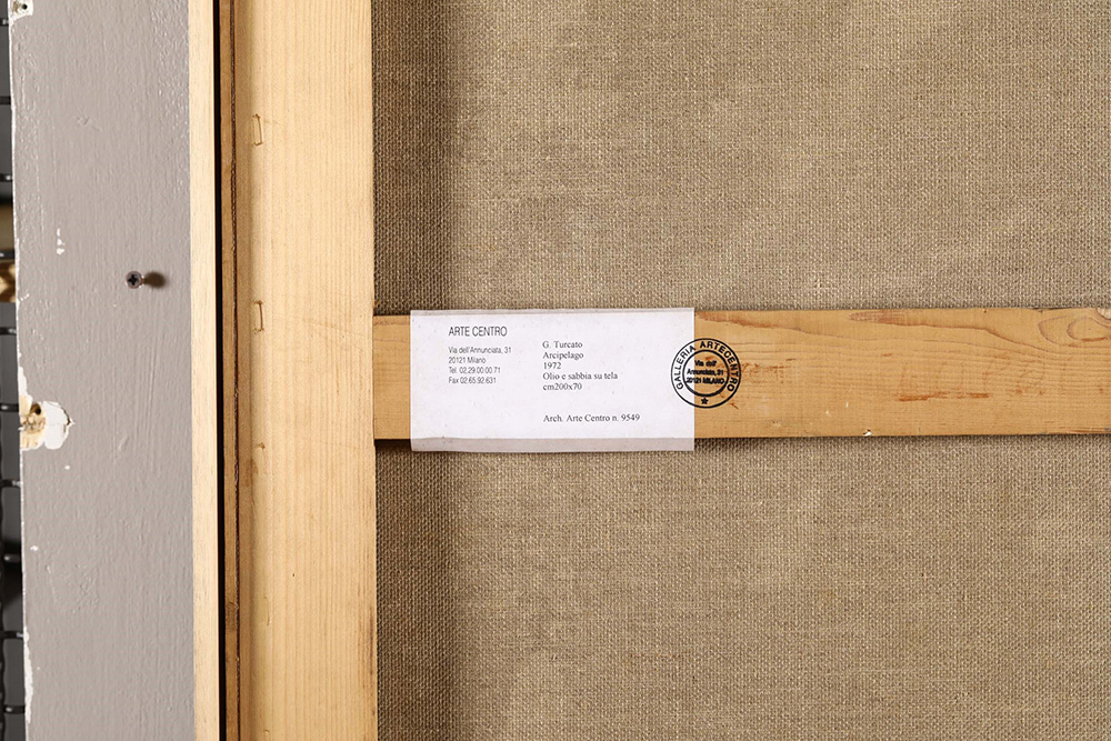 Giulio Turcato (1912-1995), Arcipelago, 1972, tecnica mista su tela, cm 200x70 Etichetta e timbro al retro della Galleria Arte Centro, Milano Etichetta al retro dell’Associazione culturale Break Club, Roma Opera registrata presso l’Archivio Giulio Turcato con il n. C.32021638614-FRANKC., Provenienza: Collezione Lupoli, Roma Studio Lattuada, Milano Galleria Arte Centro, Milano, ivi acquistato dall'attuale proprietario