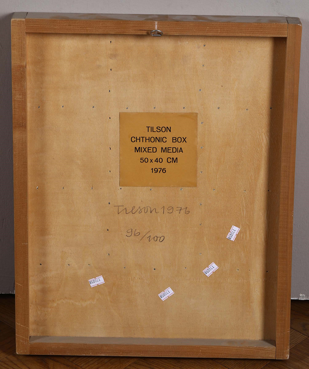 Joe Tilson (1928), Chtonic box mixed media, 1976, legno, cm 50x40 firmato, intitolato e datato al retro es. 96/100, Provenienza: Collezione privata, Roma