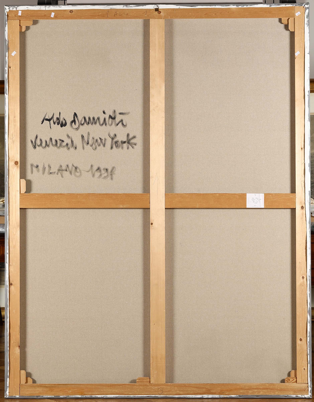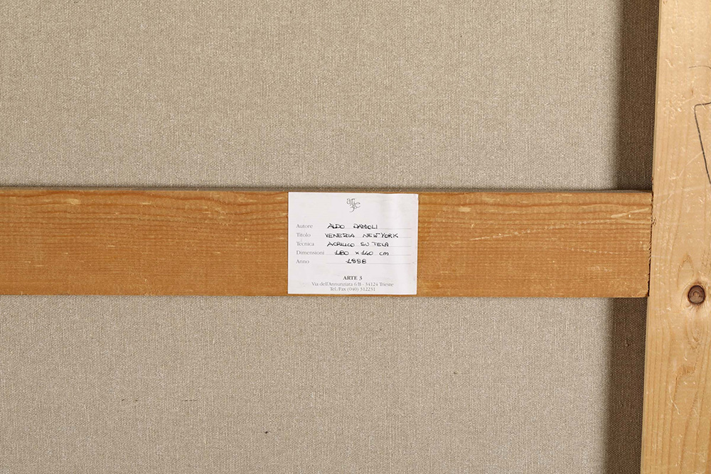 Aldo Damioli (1952), Venezia New York Milano, 1998, acrilico su tela, cm 180x140 firmato, intitolato e datato al retro Autentica su fotografia dell’artista, Provenienza: Galleria E3 Arte Contemporanea, Brescia, ivi acquistato dall’attuale proprietario