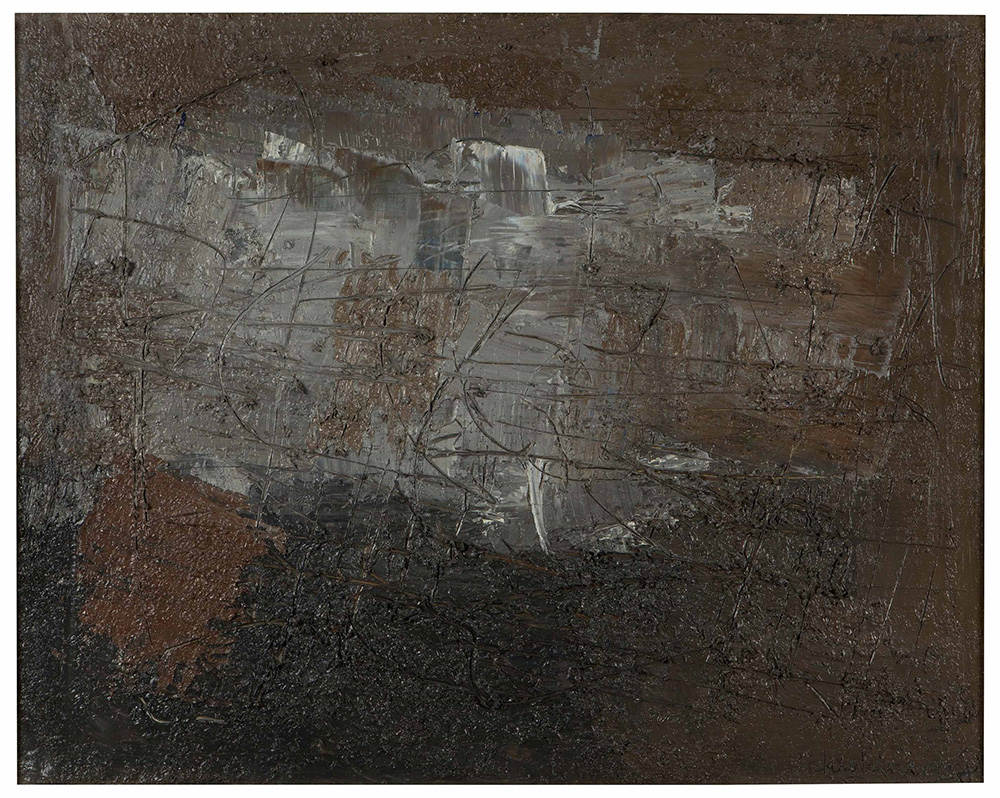 Alfredo Chighine (1914-1974), Forma grigia, 1958, olio su tela, cm 73x92...