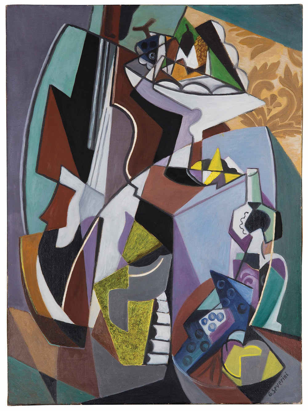 Gino Severini (1883-1966), Le Pot jaune-vert et le Violon, 1948, olio e...
